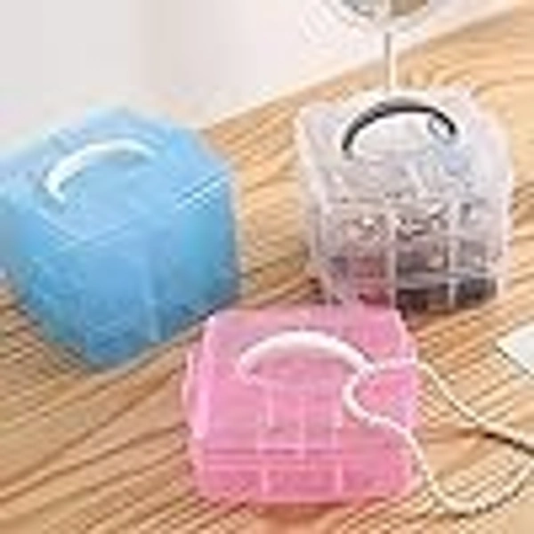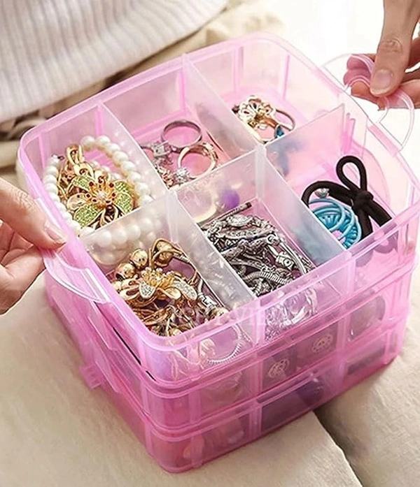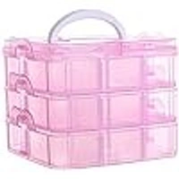18 Grid Square Storage Box | 3 Layer | With Removal Dividers | Portable | Transparent | Detachable | Jewelry, Craft Beads, Buttons Cosmetic Organizer | Plastic | Pink | 16 x 11 x 14 cm