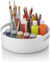 - Package Include: 1 x 360 Organizer Tray, Size: 23L x 23B x 7.5H cm, Color: White, Material: polypropylene.