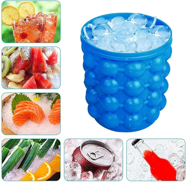- Safety - Design: Our large silicone 2-1 ice buckets and ice making dies are made of premium food grade silicones, TPR and PP and can be used directly to eat frozen ice. The outer compartment that holds the ice cubes and the inner compartment that holds the ice cubes (which can hold 120 ice cubes) are large enough to be shared with family and friends