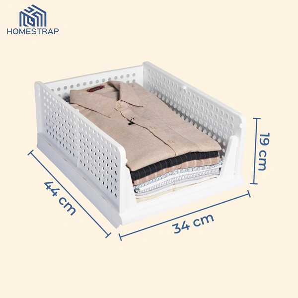 Set of 3, Stack it Up | Large Cloth Stacker | Foldable Shirt Storage Stacker for Wardrobe | Plastic Stackable Closet Organizer | White