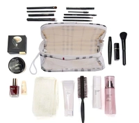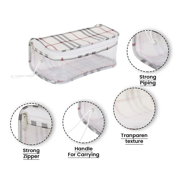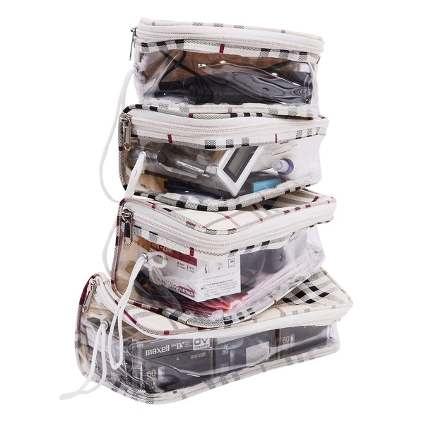 Set of 4 Multipurpose Transparent Travel Pouch Makeup Toiletry Kit Bag Pouch for Women Makeup Organizer Bag Vanity, Shaving Kit Toiletry Bag for Men -(White Checks -2) (Off White Checks )