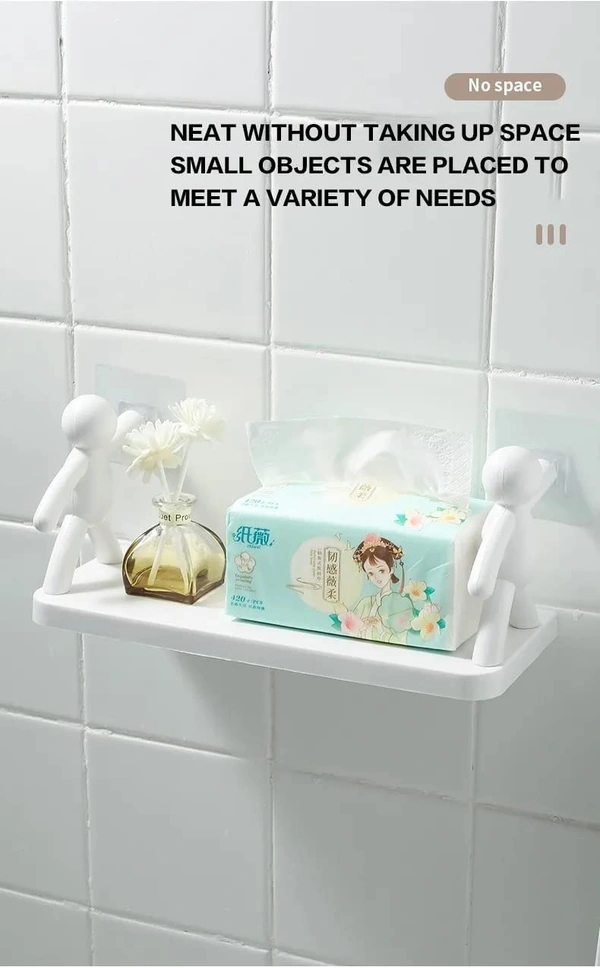 Shelf, Wall Mounted for Bathroom Rack self Adhesive for Storage Shelf Bathroom Organizer Without Drill Pack of 1 | Polypropylene, White (Pack of 1)